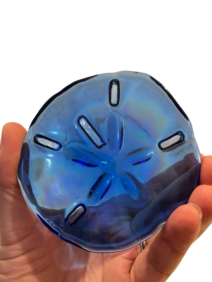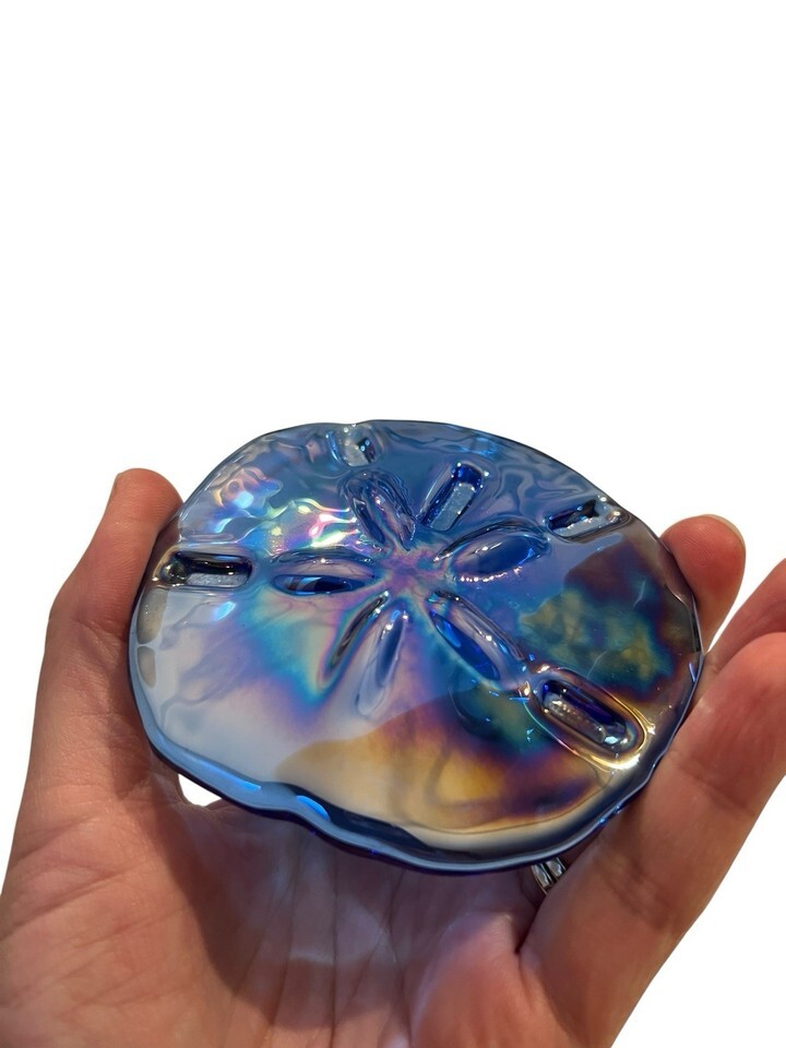 Art Glass Iridescent Blue Glass “Sand Dollar” Paperweight Beach Nautical