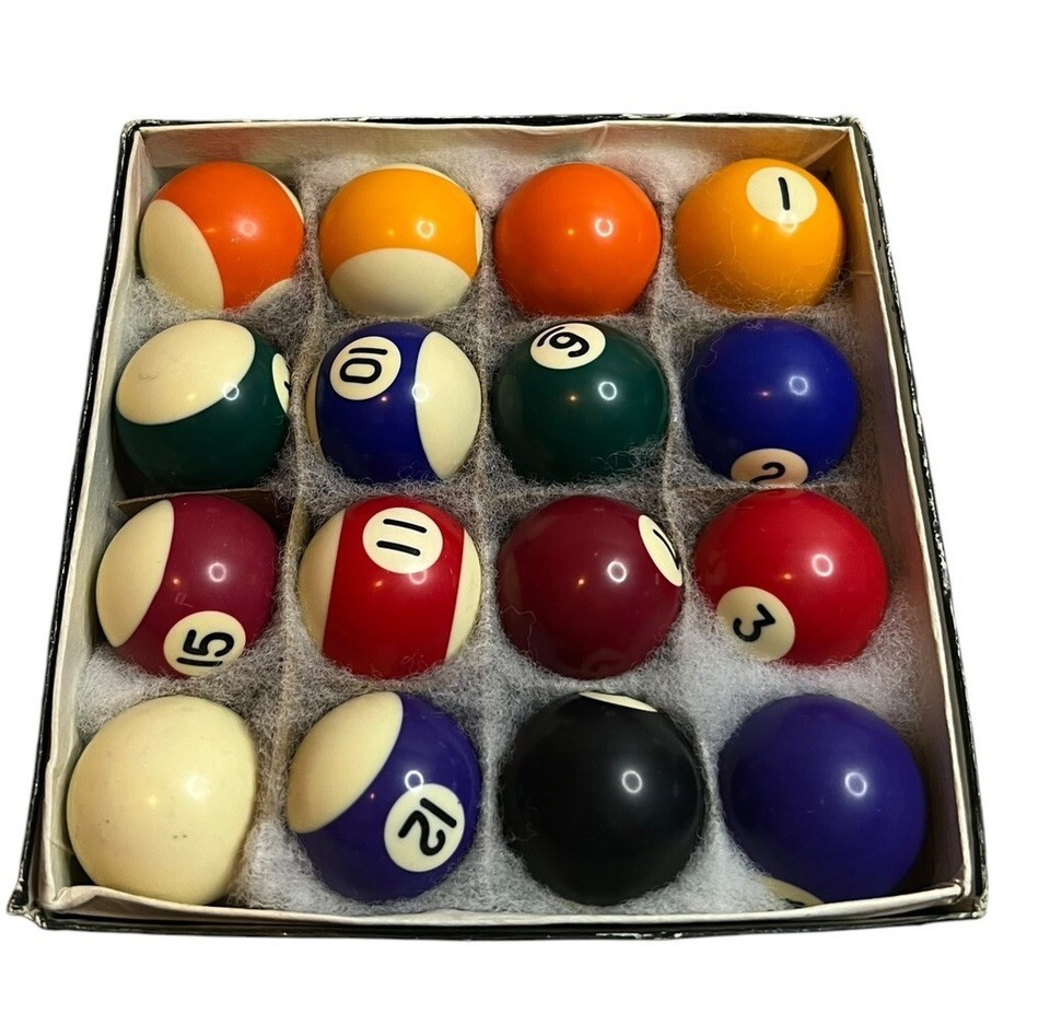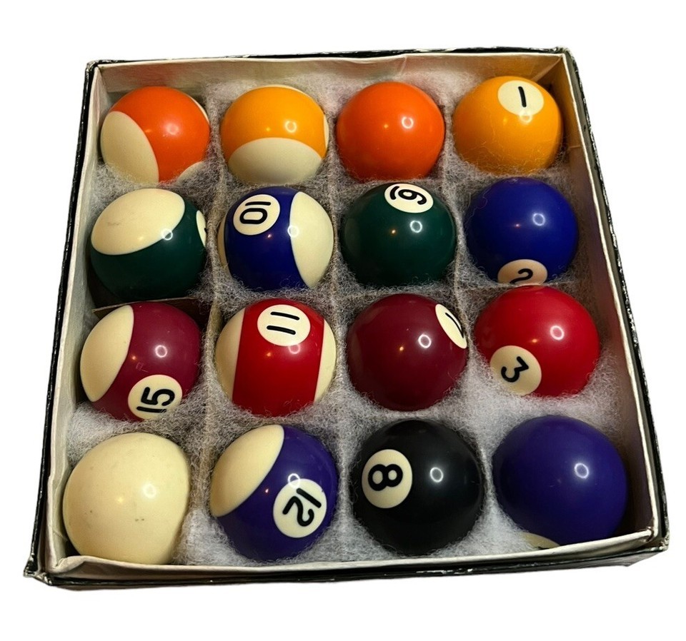 Miniature Mini Billiard Pool Table Ball Set 1.5" Boxed 16 Piece Cue Ball