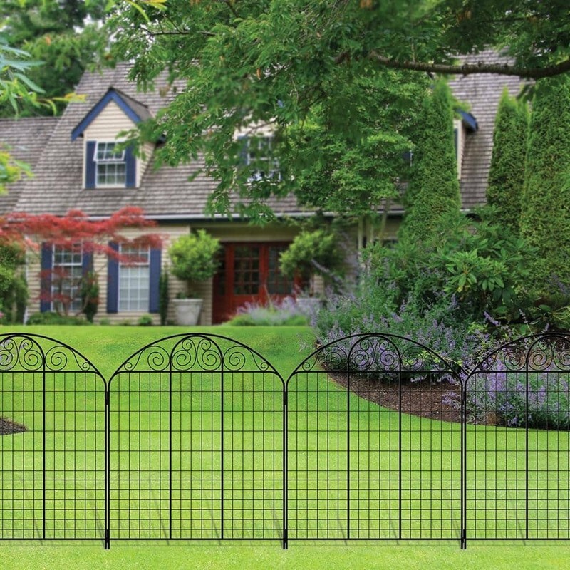 The Rockdale fence is a versatile fencing solution that will add style and elegance to your garden or walkway. The panels feature a powder-coating for added durability and to help prevent corrosion so your fence will last for years to come. The panels are quick, easy, and painless to install, no digging or concrete is required for installation. Panels lock together using the quick connecting latch design and easily anchors into ground with the post spike. Includes 3 panels and spikes. Compatible with the Rockdale gate (sold separately).