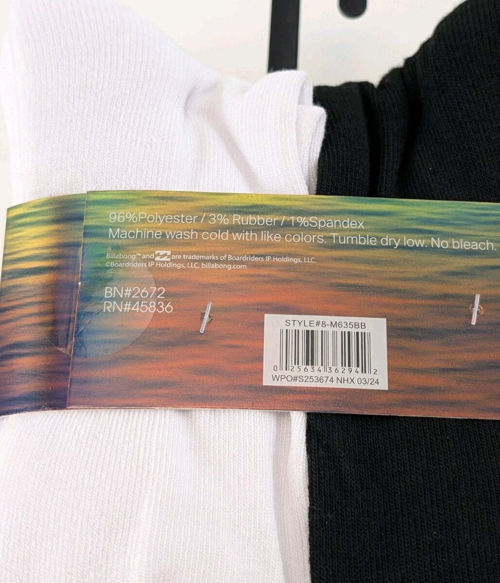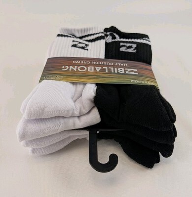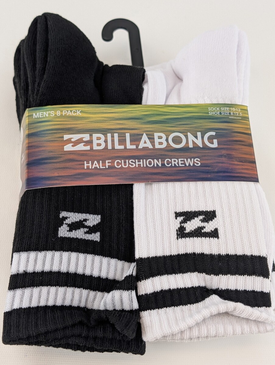 BILLABONG Half Cushion Crews Black White Crew Socks 10-13 Men's 8 Pack New. Condition is New with tags. Shipped with Standard Shipping.