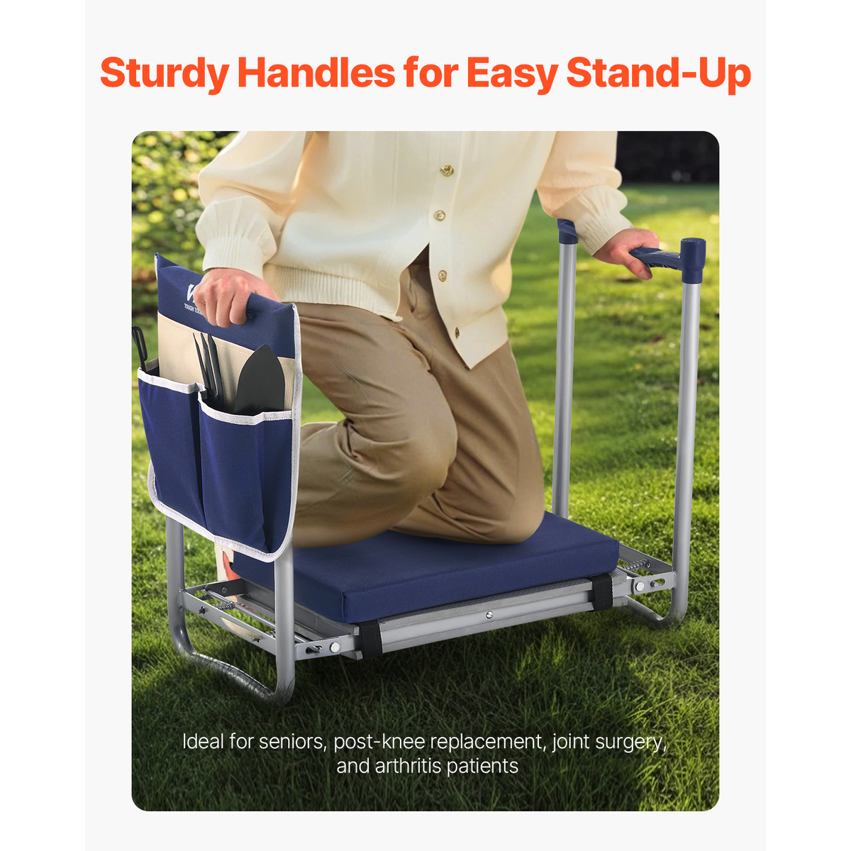 VEVOR Garden Kneeler and Seat, 11 in Thick Pad, Folding Seat with 1 Tool Bag