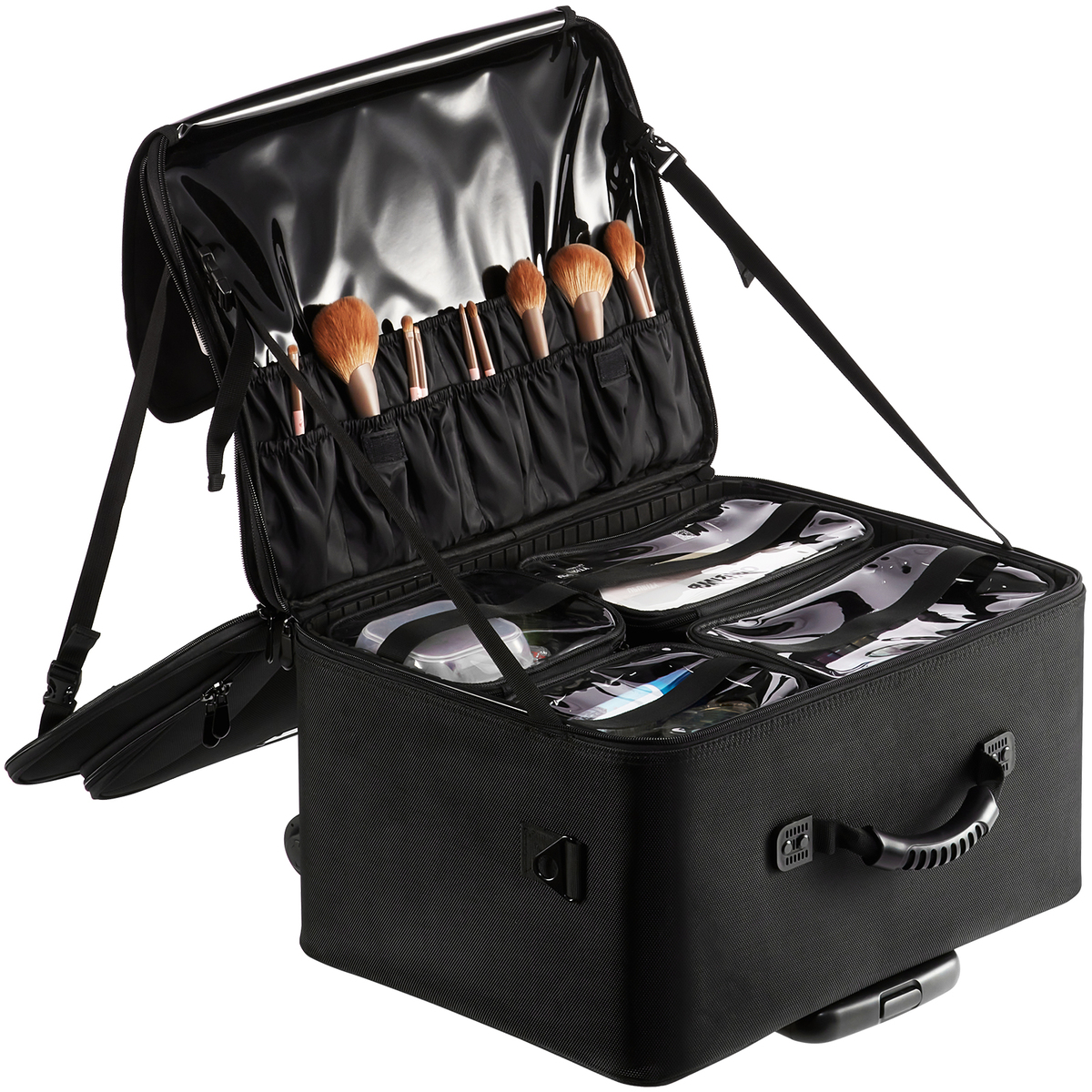 Lightweight and Portable: The makeup bag has a net weight of 11.9 pounds/5.4kg and comes with adjustable pull handles and wheels, as well as a shoulder strap and carrying handle. You can choose to pull it, carry it by hand, or wear it over your shoulder, making it easy to transport. It fits easily in your car trunk or can be taken on an airplane, serving as your mobile makeup workstation.