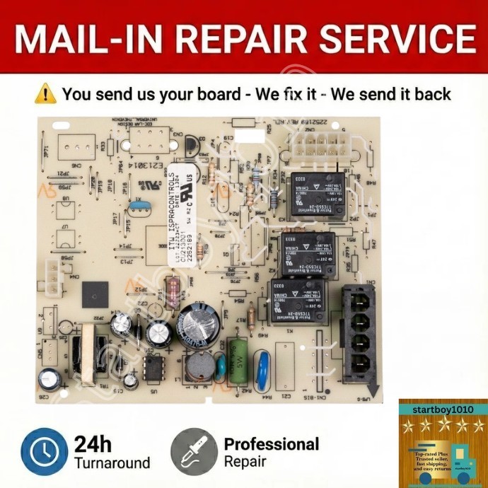 CONTROL BOARD REPAIR AND TESTING We repair most common problems with Maytag, Whirlpool refrigerators boards. Common Board Failures *** "Maytag refrigerator had flashing lights and the ice maker door repeatedly flapping" "The touchpad on my Maytag refrigerator was going nuts flashing and buzzing. The ice dispenser door was opening and closing at will." "Display was flashing water and ice dispenser did not work, ice door flapping" "Front display was flashing the ice/water door was flipping back and forth making a poping sound also the fridge was not cold" Repair Service This sale is for a REBUILD SERVICE on your board. You will have to send your part to us for repair. We will rebuild and mail the part back to you within 48 hours after receiving the part. We use USPS Priority Mail service which takes additional 2-3 business days for delivery. When you ship your board to us for repair, please let us know the tracking number from the receipt We don't repair burned boards, missing parts or If your board has been repaired or replaced parts . In most cases we can repair the defective board, however if your board can't be repaired, ( no repairing fee) ABOUT THE WARRANTY: UNLESS SPECIFIED OTHERWISE, ALL OF OUR PARTS ARE WARRANTIED FOR 30 DAYS. AGAINST REPEAT IDENTICAL FAILURE FROM THE DATE OF RETURN SHIPPING. THANKS FOR READING AND WE LOOK FORWARD TO DOING BUSINESS WITH YOU Track Page Views WithAuctiva's FREE Counter