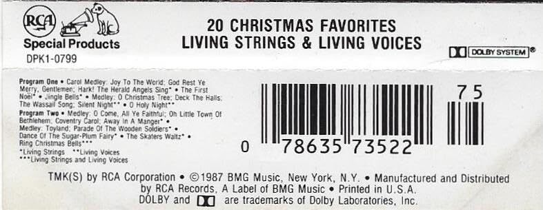 Living Strings & Living Voices 20 Favorite Christmas Songs [Audio Cassette] Li