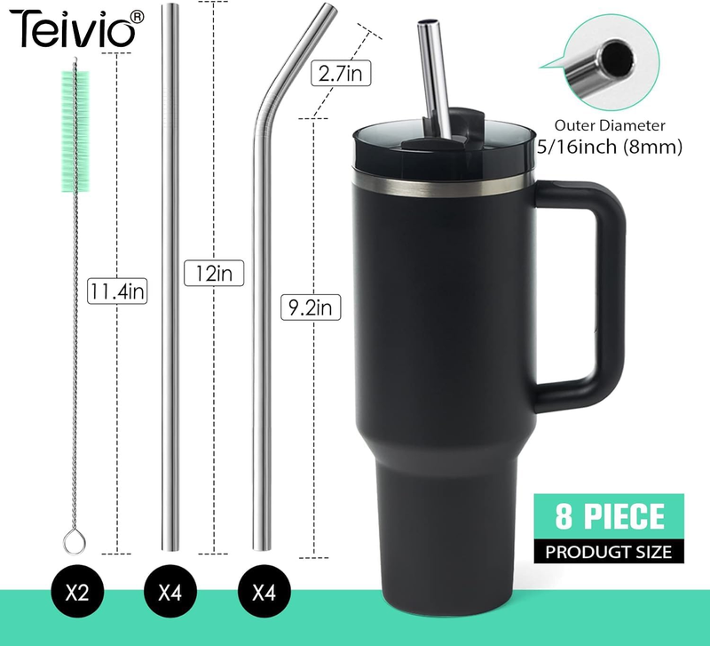 8 Piece 5/16 Inch (8Mm) Wide Stainless Steel Straws for 40 Oz Tumbler with Handle