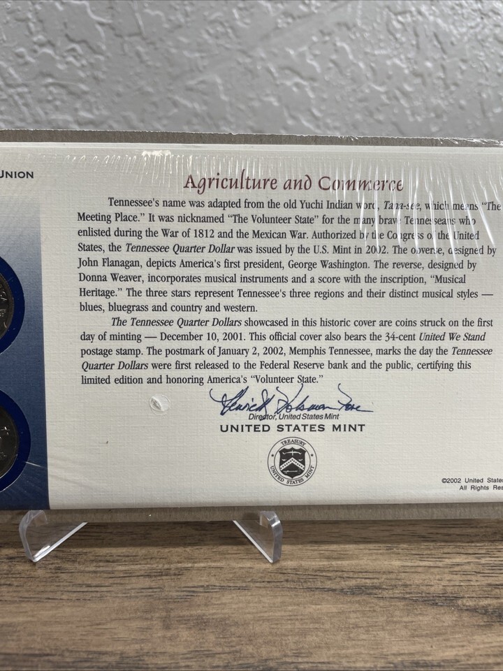 2002 Tennessee P&D State Quarter First Day Coin Cover Sealed Agriculture KG JD