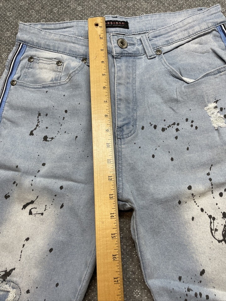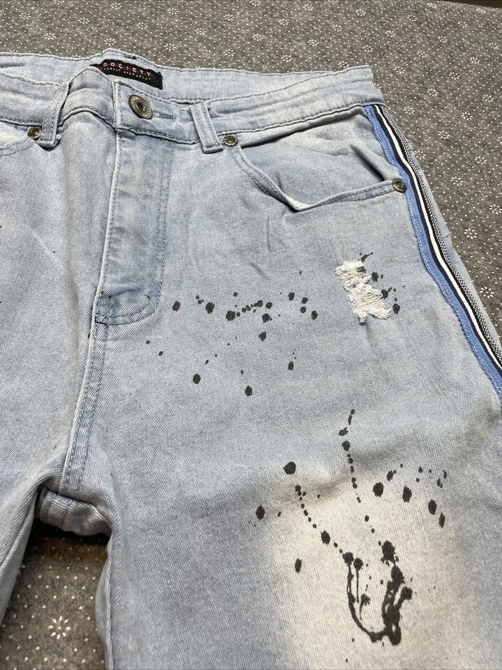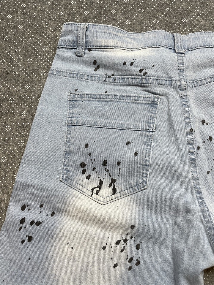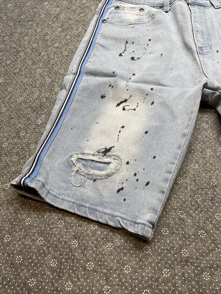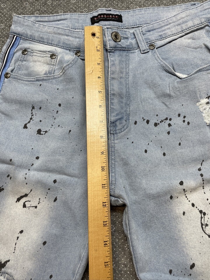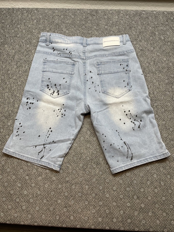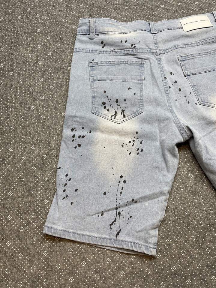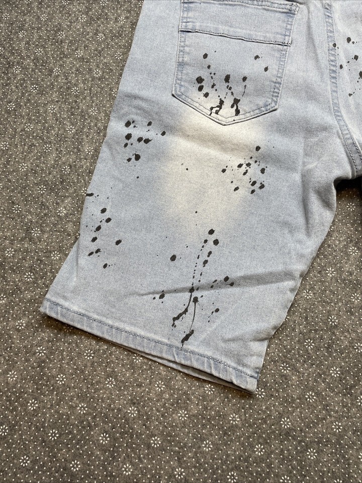 M.Society Light Denim Jean Shorts Splatter Shorts Men's Size 32 KG JD