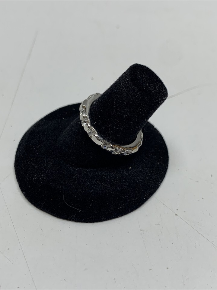 Women's Sterling Silver Wedding Ring Band with Synthetic Stones 925 Size 6.25 KG