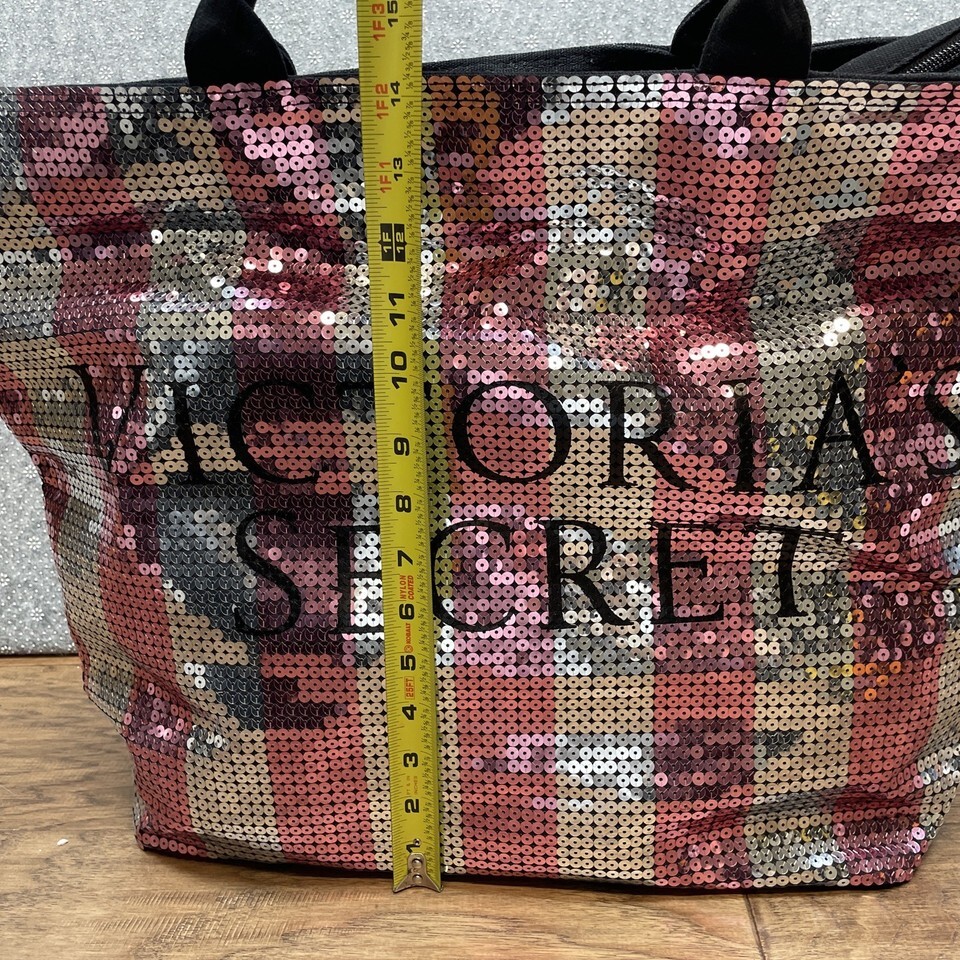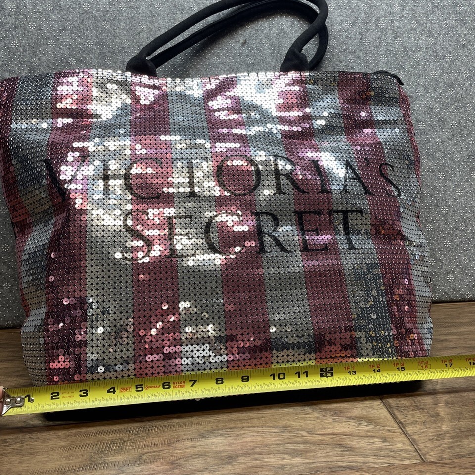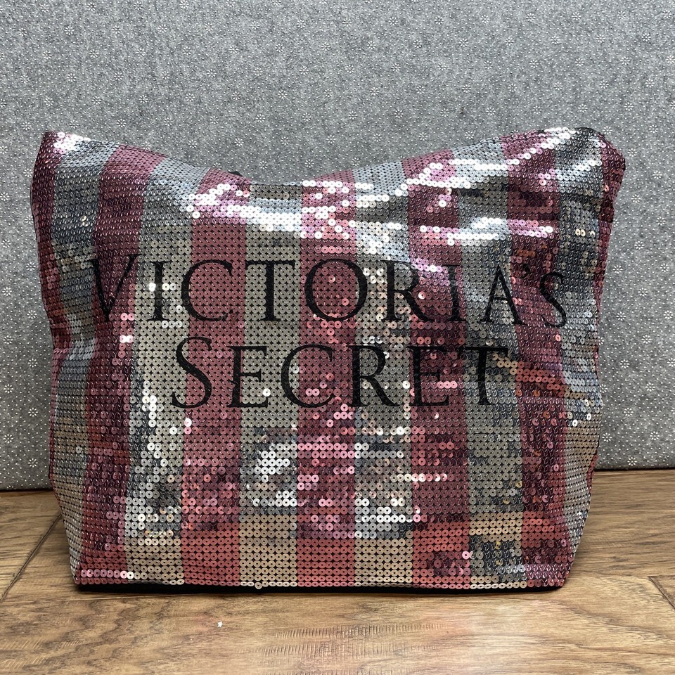 Victoria’s Secret Pink & Silver Sequin Stripe Weekender Tote Bag LG JD