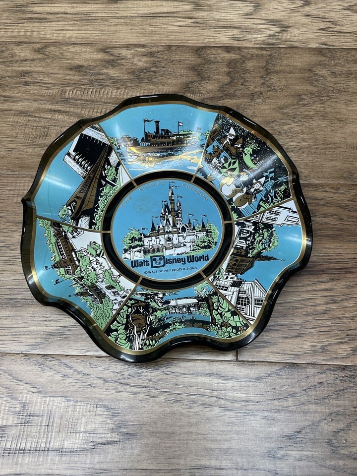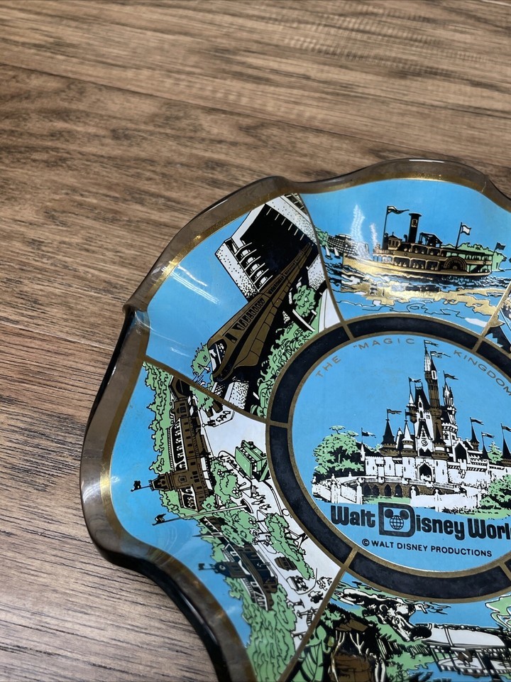 Vintage Lot of 2 Walt Disney World Trinket Trays Monorail Castle KG JD