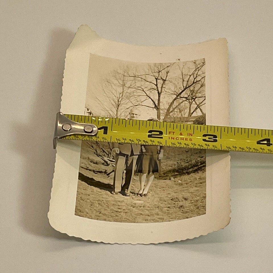 Good displayable condition. Paper is yellowing. Paper has some wear and tear, particularly around the corners and edges. Paper is beginning to roll up due to age and storage. This pictures depicts a couple posing before leaving for war, or home on leave. Please see pictures for condition details and measurements.