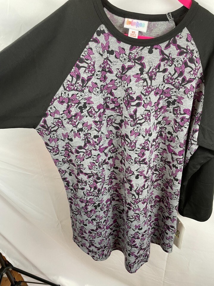 LuLaRoe Randy Disney Minnie Mouse Print 3/4 Sleeve Top Minnie Mouse Grey XS