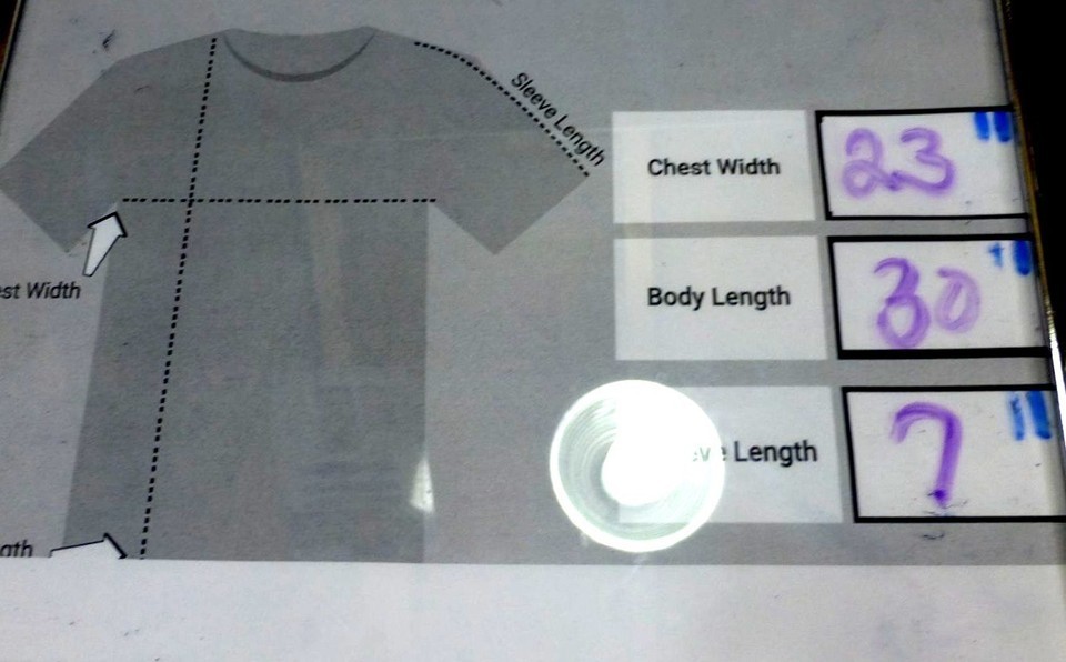 Chest Width = 23 Inches, Body Length = 30 Inches, Sleeve Length = 7 Inches