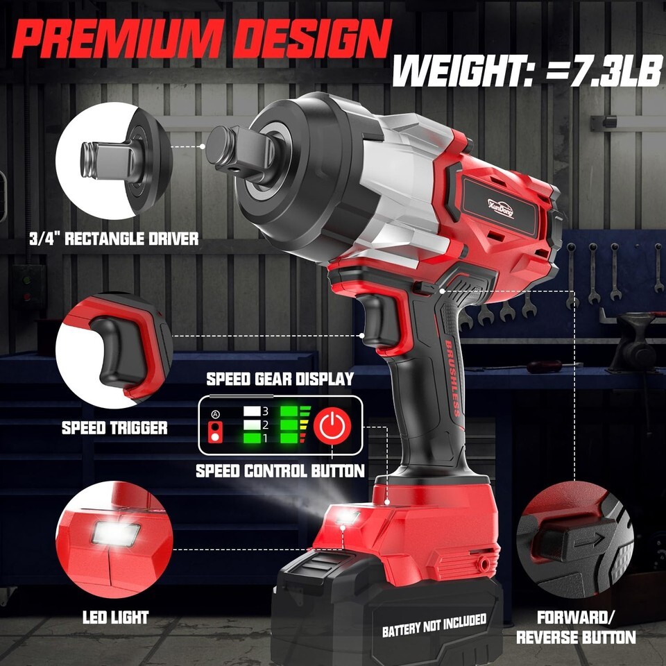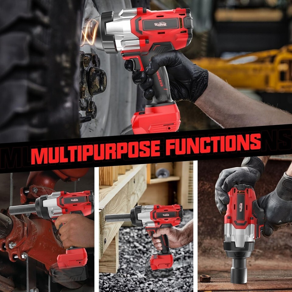 Impact Wrench 3/4 inch: Compatible with Milwaukee 18V batteries(NO BATTERY), this cordless 3/4" impact gun eliminates messy cords and adapts effortlessly to workshops, job sites, or roadside emergencies. Integrated voltage protection safeguards against overloads.