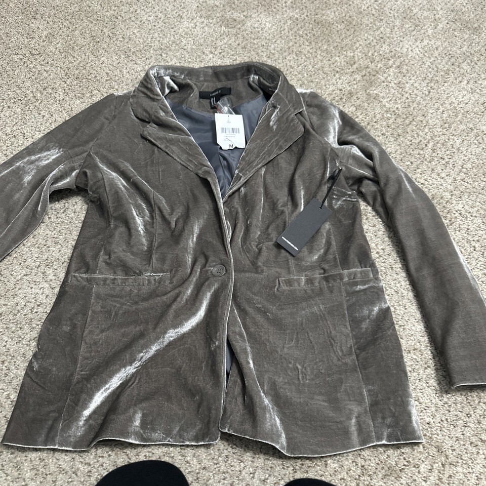 The Velvet Career Jacket in size Medium is a stylish and versatile outerwear piece for women. Made from luxurious velvet material in a gunmetal gray color, this long sleeve jacket is designed for juniors and features a basic jacket style. Perfect for adding a touch of elegance to any outfit, this jacket is ideal for professional settings or a night out. The brand Medium ensures quality and attention to detail, making this jacket a must-have addition to any wardrobe.