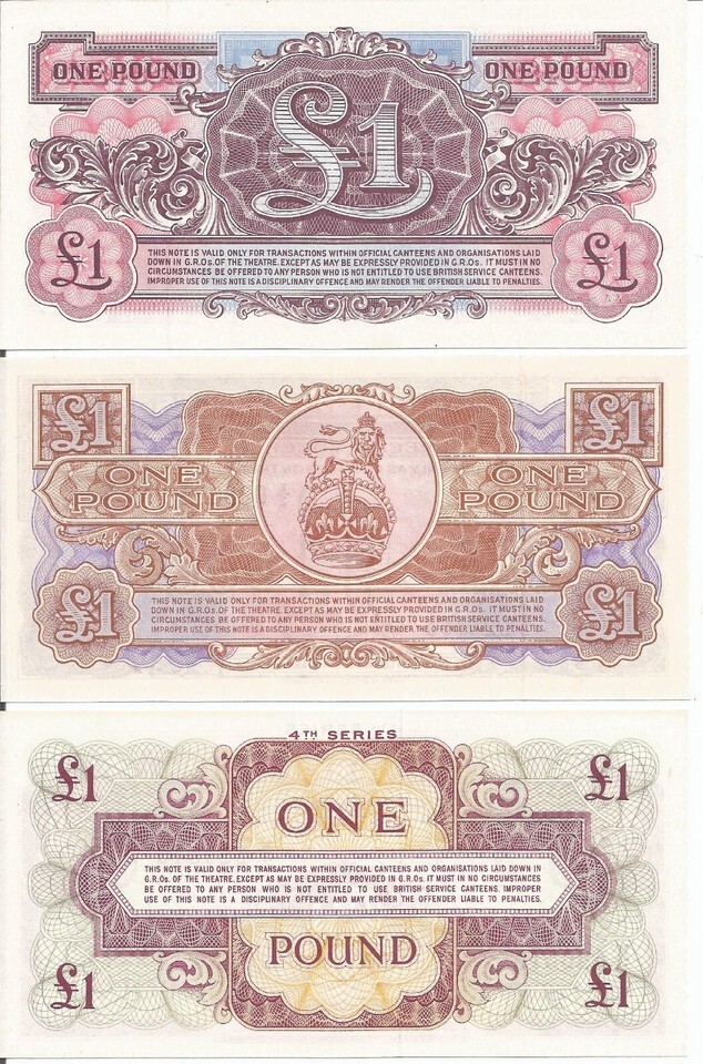 RARE SET of 3 BRITISH ARMED FORCES (BAF) ONE 1 POUND UNC NOTES - SERIES 2, 3 & 4