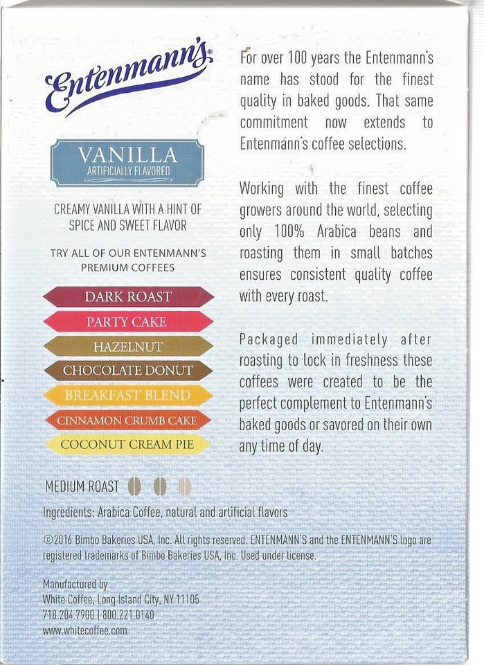 Entenmann's Single Serve Coffee, Vanilla, 18 count box EXP 04/26