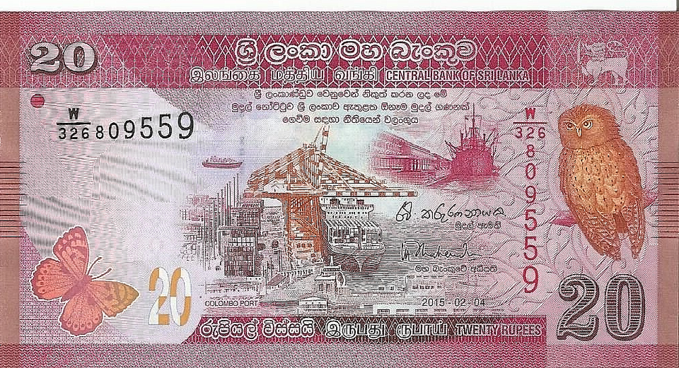 5 Notes SRI LANKA 20 Rupees, 2020, P-123, Butterfly/Owl, UNC World Currency