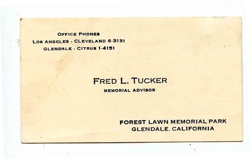 Fred L Tucker Business Card Forest Lawn Memorial Park Glendale California