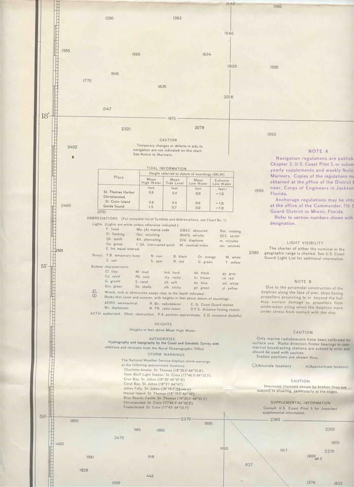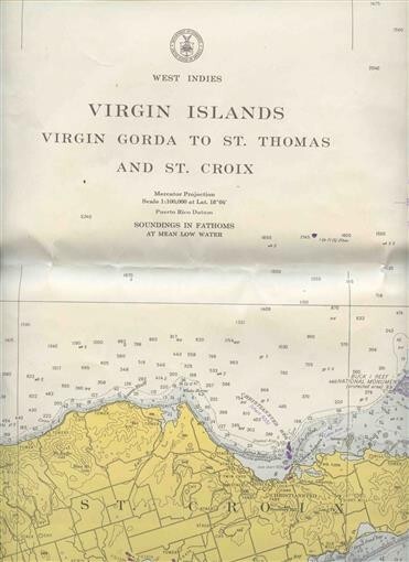 Opens to about 45" x 34"" and the back is blank. A large C GS 905 Map. By the US Department of Commerce, 10th edition April 22, 1972. With Sounding in Fathoms and lots of other information . Virgin Islands Map Virgin Gorda to St Thomas St Croix 1972