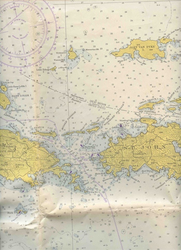 Virgin Islands Map Virgin Gorda to St Thomas St Croix 1972
