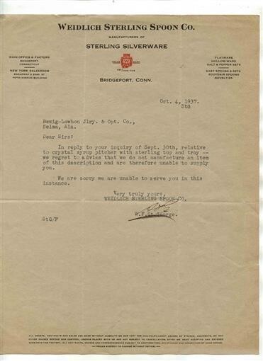 An original single page letter with blank back. Weidlich Sterling Spoon Signed Letter Silverware Bridgeport Connecticut 1937