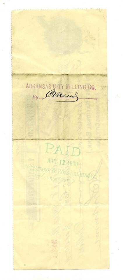 United States Depository Check U S Indian Trader 1890 Arkansas City