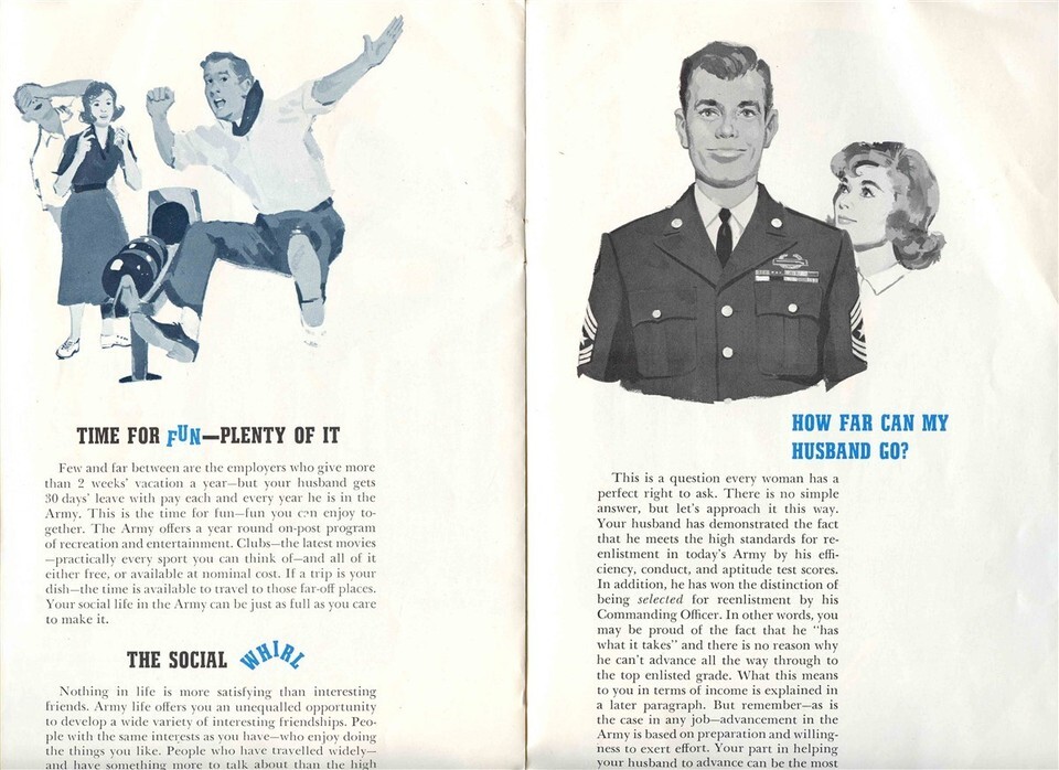 A 16 page booklet of information to new wives of United States Army personnel. A Word to the Wives US Army Booklet