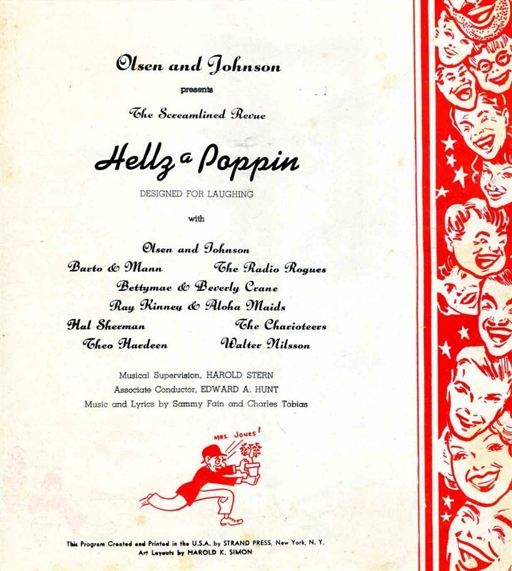 HELLZ a POPPIN Playbill & Souvenir Program Olsen & Johnson 1939 Theo Hardeen