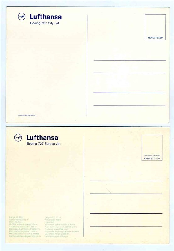 2 Lufthansa Boeing 727 Europa Jet Official Postcards German Airline