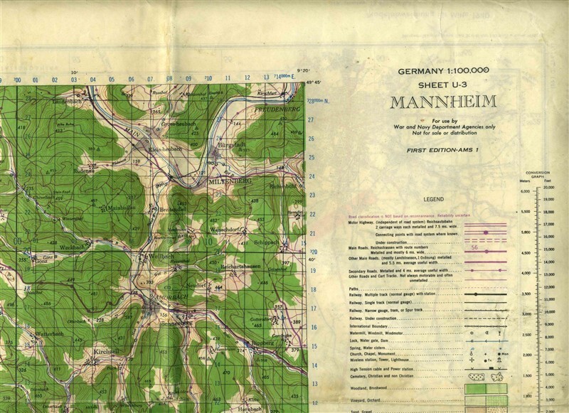 Mannheim Germany 1943 War & Navy Dept Map First Edition U-3 England Map on Back