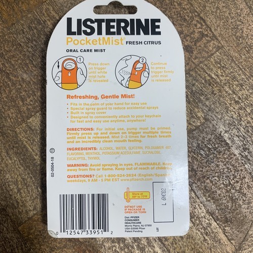 Listerine Pocketmist FRESH CITRUS Oral Care Mist Bad Breath Over 140 Mists
