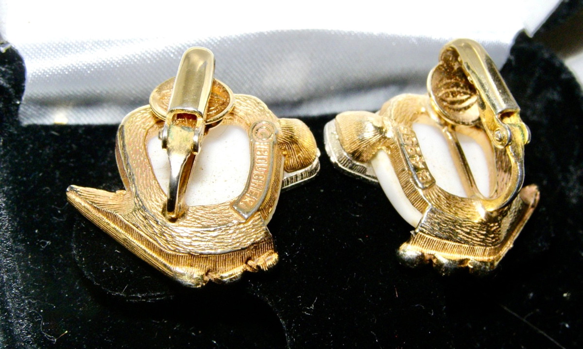 VINTAGE SIGNED BOUCHER GOLD-TONE MODERNIST STYLE CLIP-ON EARRINGS w/ TRIANGULAR
