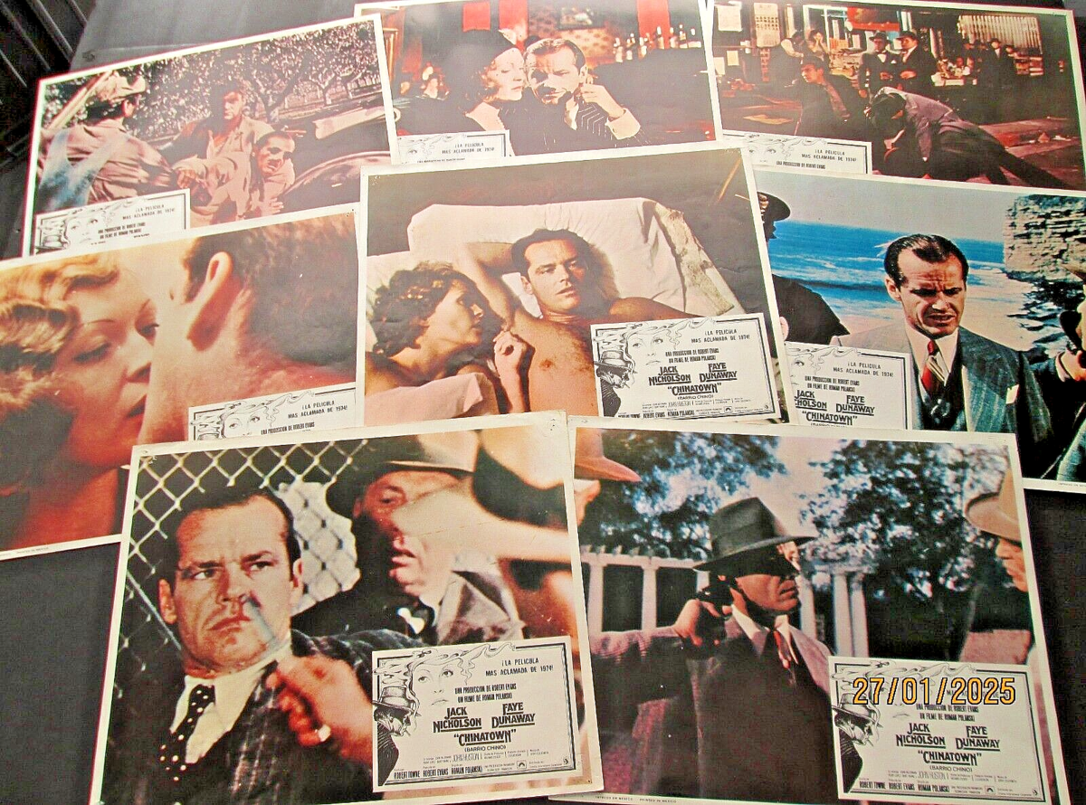 JACK NICHOLSON :ROMAN POLANSKI:DIR: (CHINATOWN) RARE VER,T MOVIE LOBBY CARD SET RARE 11X14 SIZE (EURO) VERSION 8-CARDS IN SET (CLASSIC)