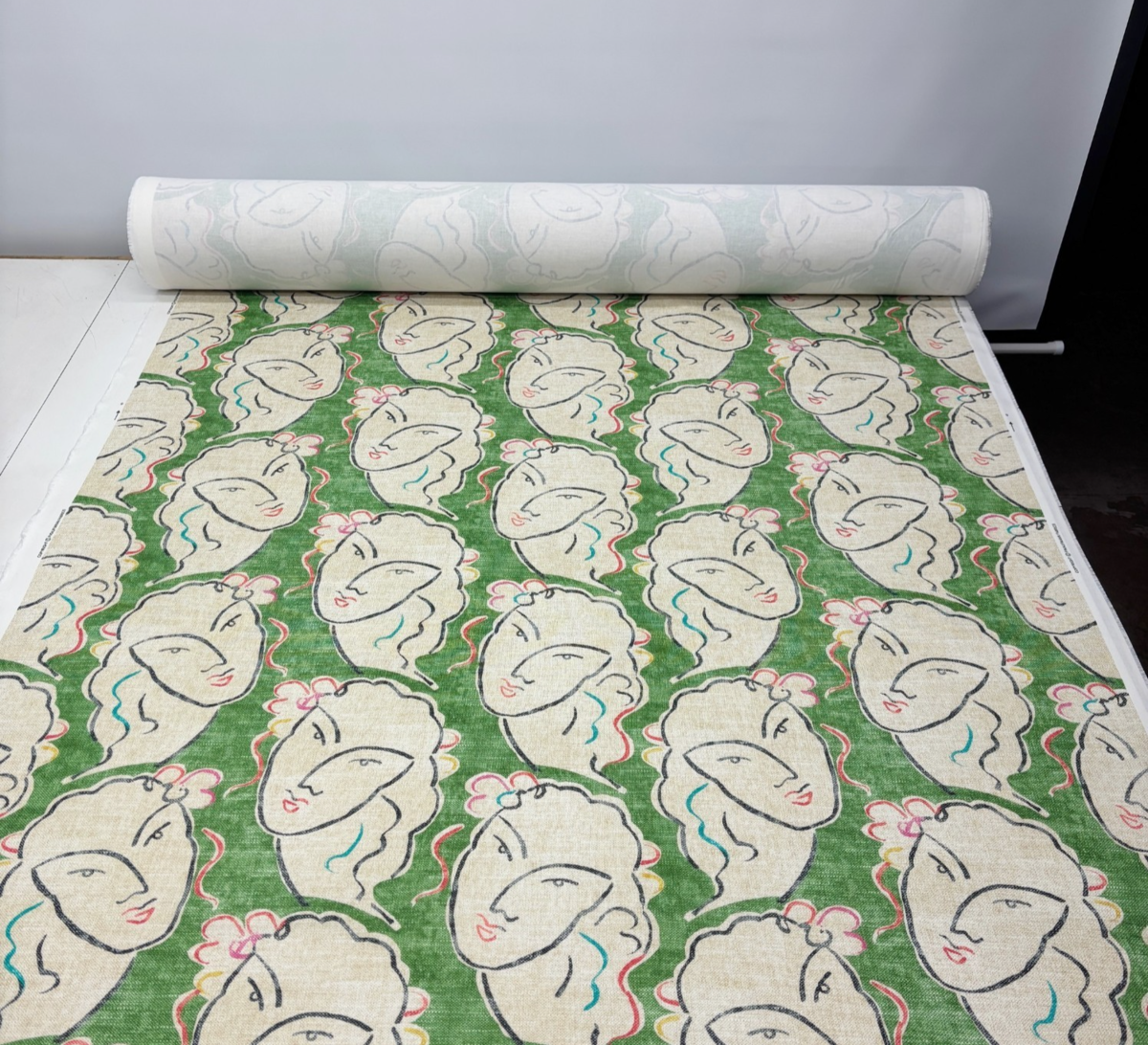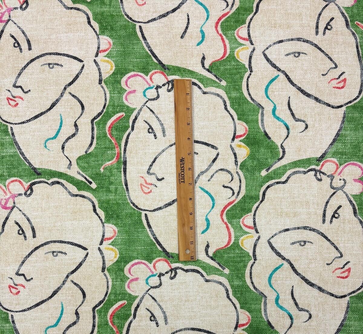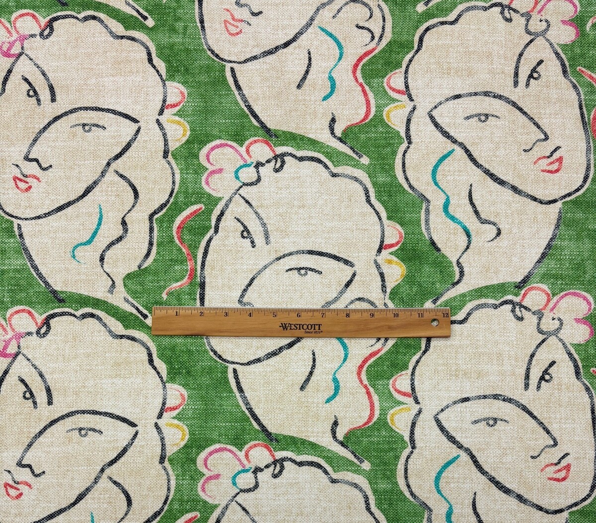 P KAUFMANN BEAU VISAGE MOJITO GREEN WOMAN FACES MULTIUSE FABRIC BY YARD 54"W