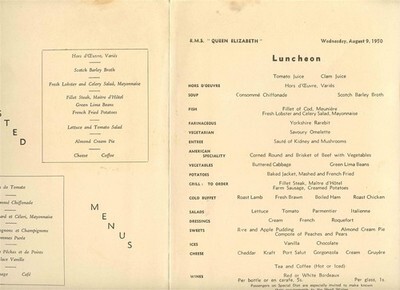 Cunard Line RMS Queen Elizabeth Luncheon and 50 similar items
