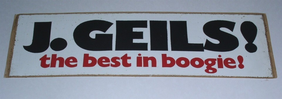 This is a vintage bumper sticker entitled, "J. Geils! The Best In Boogie!". Date unknown, I've had this since the 80's. A terrific item for the fan or collector.