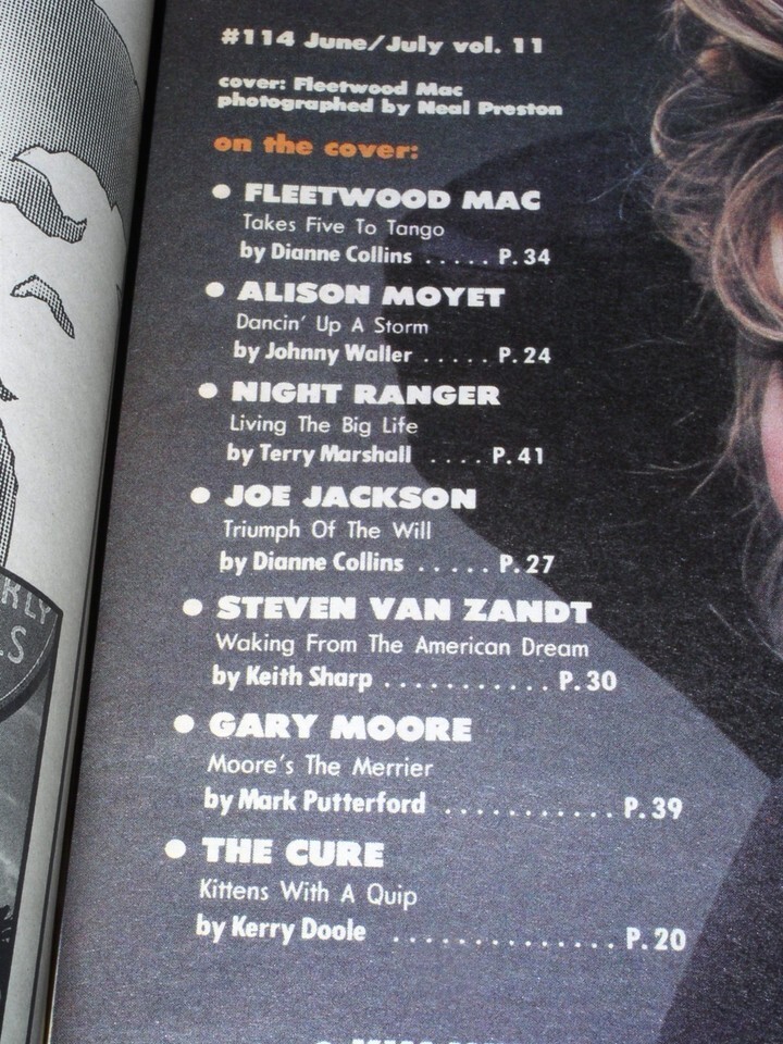 This is the June-July, 1987 issue of "Rock Express" magazine. Cover story on Fleetwood Mac. Inside: Alison Moyet, Night Ranger, Joe Jackson, Steve Van Zandt, Gary Moore, The Cure. A terrific item for the fan or collector.