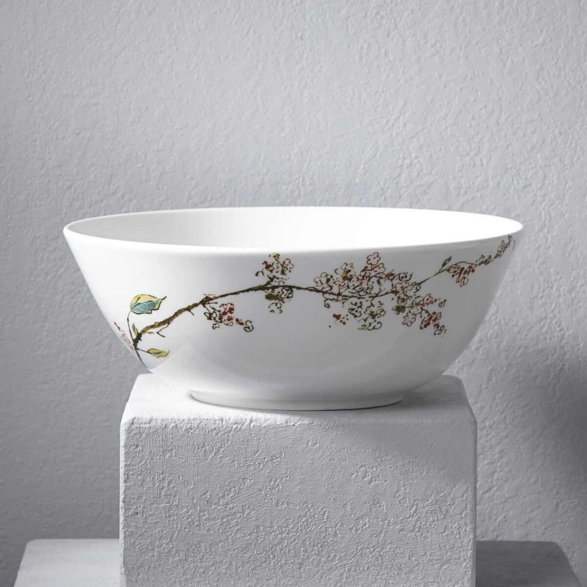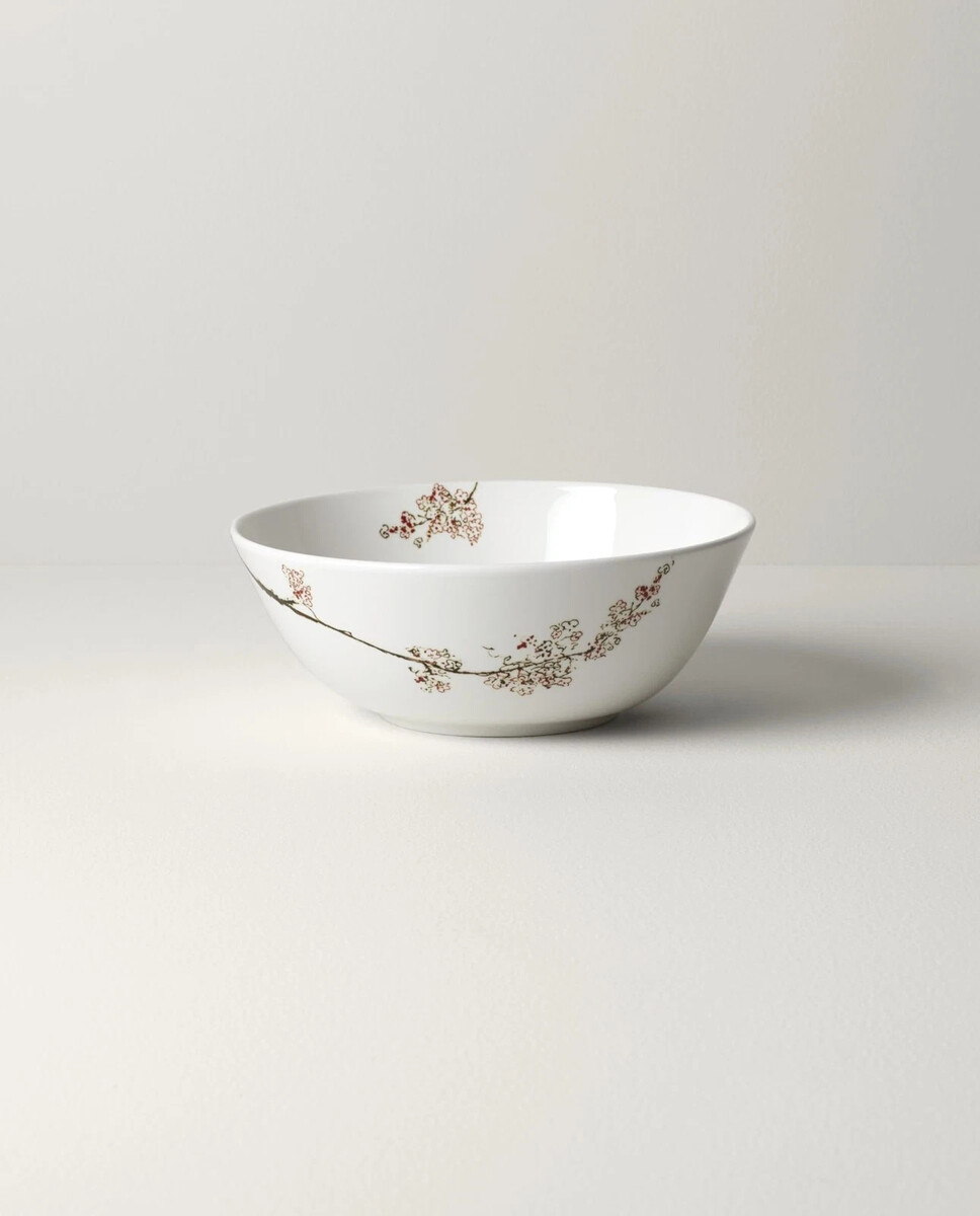 Lenox white bone china serves as the canvas for an exquisite watercolor depiction of a vibrant blossoming tree branch. The Chirp Large Serving Bowl boasts outstanding freezer-to-oven-to-table performance. Designed with revolutionary durability, this dishwasher and microwave-safe set will last for years to come.