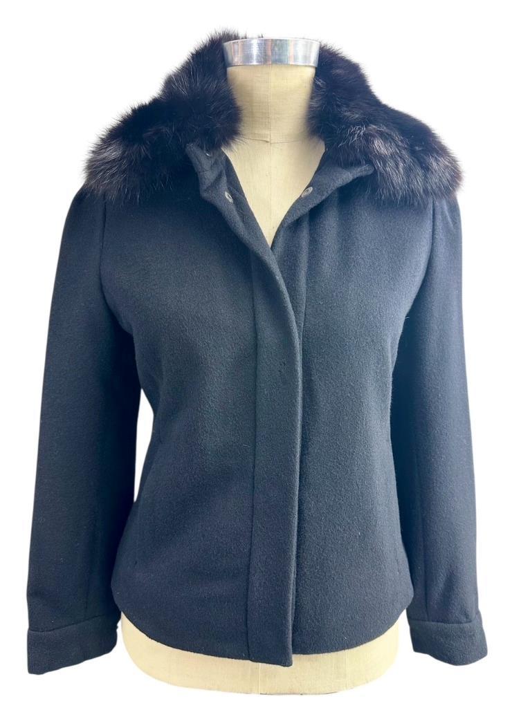 Very Stylish JIL SANDER 100% Cashmere Black Short Coat Jacket Removable Sable Fur Collar