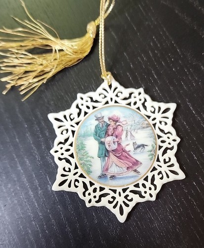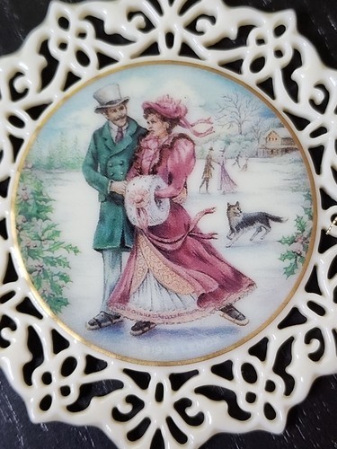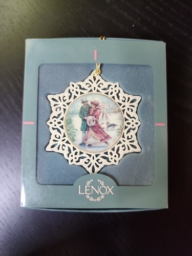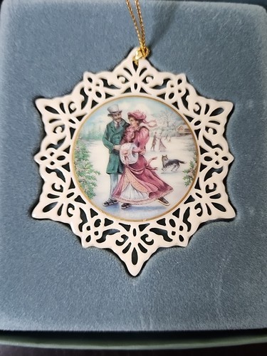 Lenox Porcelain Christmas Ornament Victorian Lace Skaters Vintage FIne China Box