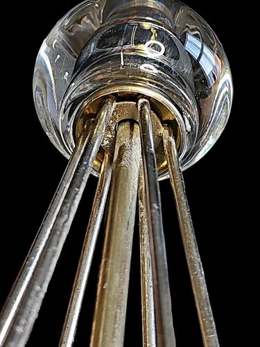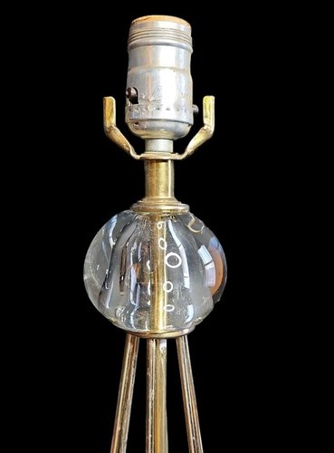 UP FOR SALE: 1950s Atomic Age Brass and Glass Table Desk Lamp Vintage Mid Century Modern