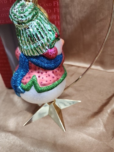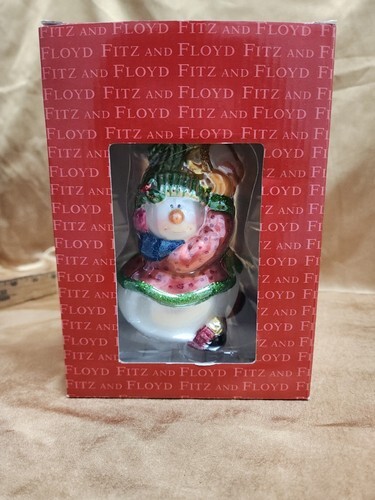 Fitz And Floyd Snowman With Tambourine Glass Ornament 19/1566 boxed 7.5" A