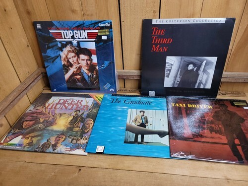 5 Laserdisc Movies Top Gun, Taxi Driver, Third Man, Graduate and Deer Hunter