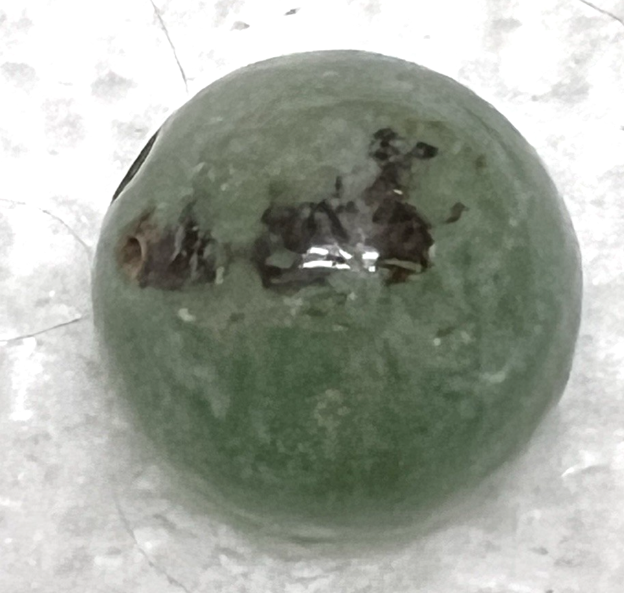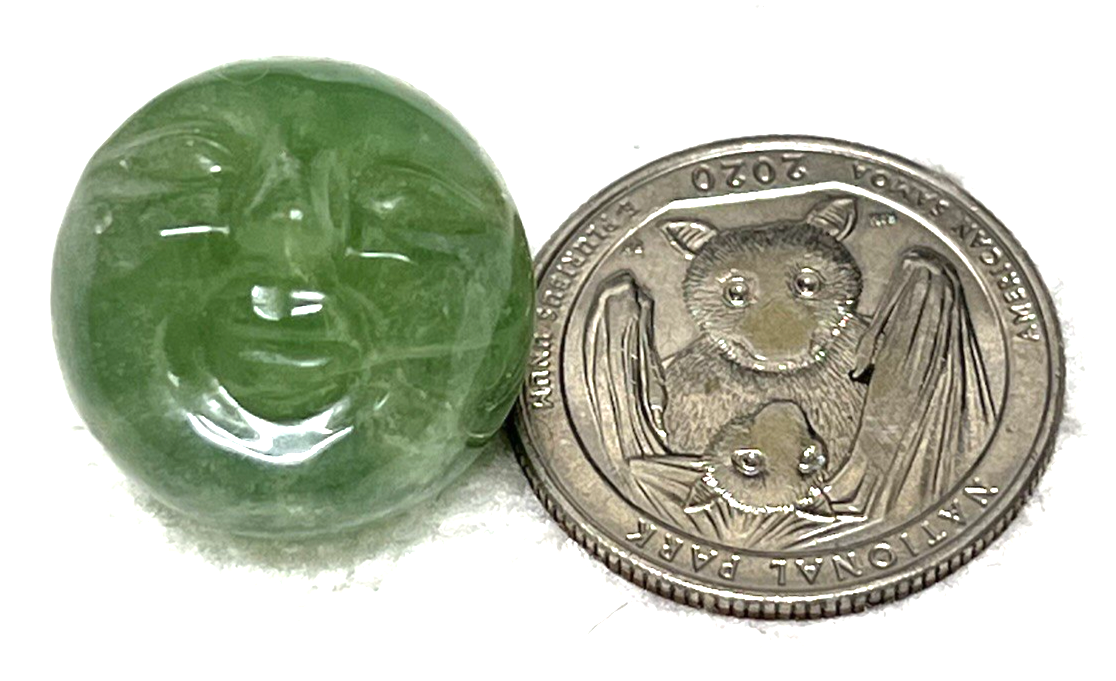 1 Vintage Carved Green Jade Moon w Face 5/8 In Round Bead Beads