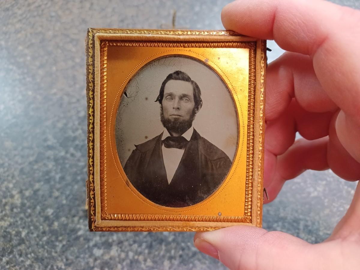 Antique Ambrotype Man with Abraham Lincoln Beard Sixth Plate Case & Stand