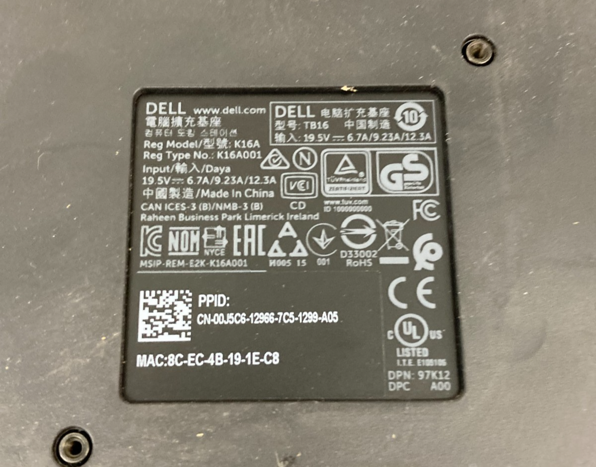 Dell K16A K16A001 USB-C Thunderbolt Docking Station TB16 - No AC adapter
