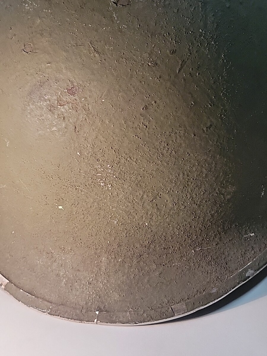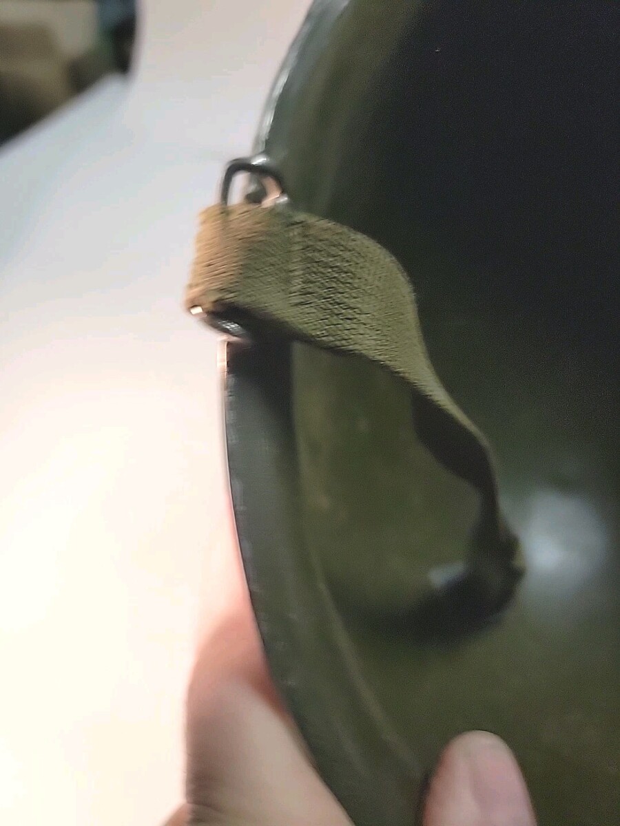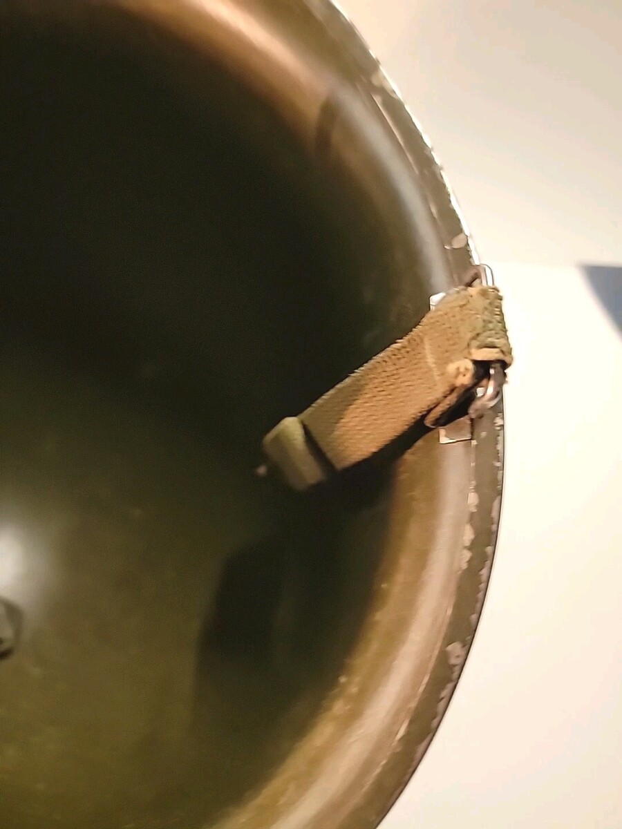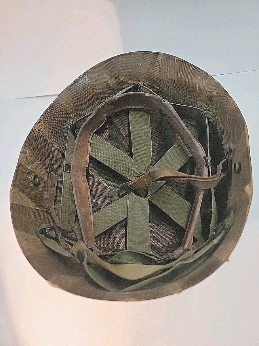 HAS SOME WEAR ON OUTSIDE OF HELMET AND STRAP IS BROKEN ON INSIDE OF LINER AND LINER HAS STRESS CRACKS,SEE PICS PLEASE