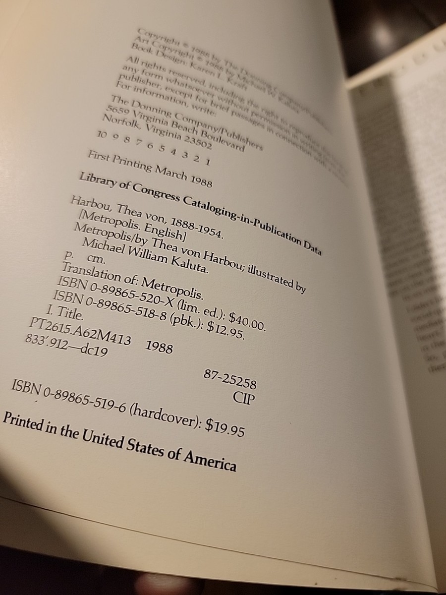 Metropolis by Thea Von Harbou MICHAEL KALUTA Illustrated Novel Donning 1988 Ist