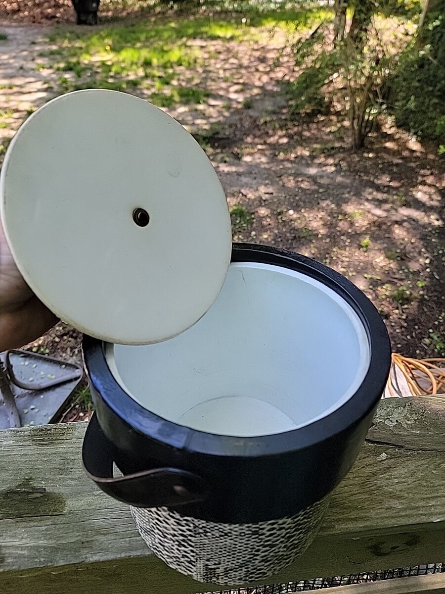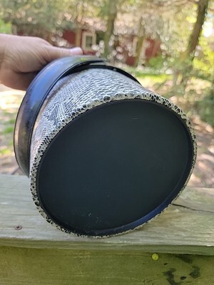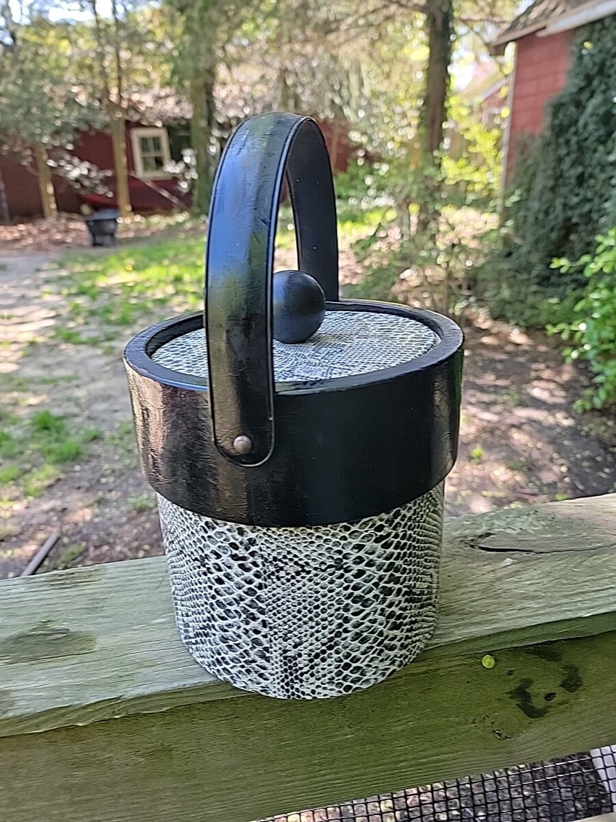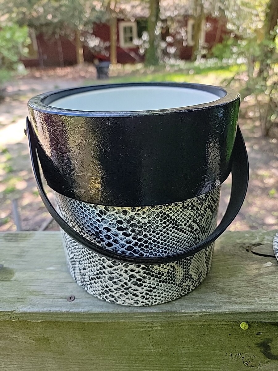 MID CENTURY VINYL BLACK & WHITE SNAKE SKIN ICE BUCKET WITH LID ~ MCM 1960's